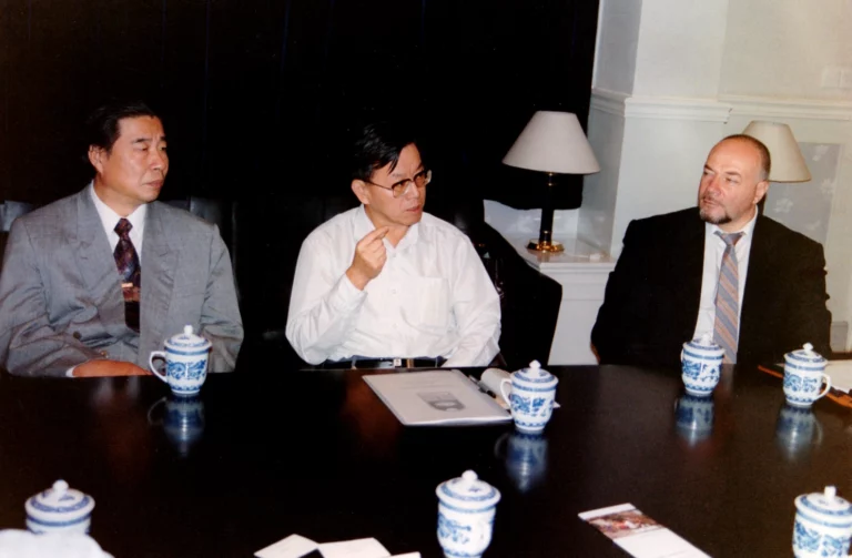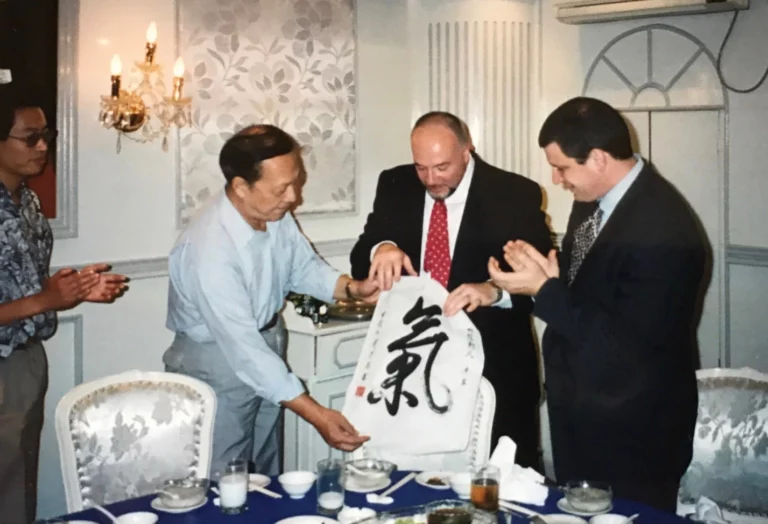 Grand Master Alex  Anatole with Prof. Zhu Run Long, President of the Shanghai Chi Quong Research Association, and Dr. Shee, President of Shanghai University of Traditional Chinese Medicine (Shanghai, China)