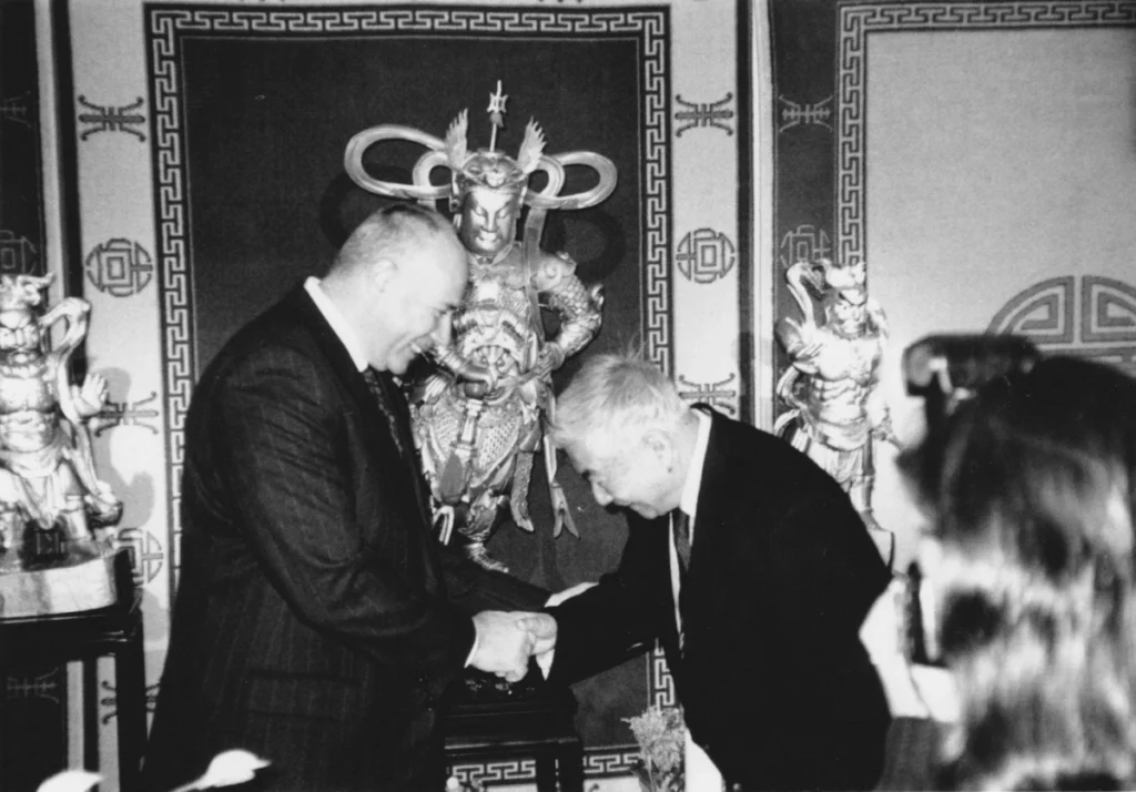 In 1994, a delegation of directors from the Center of Traditional Taoist Studies traveled to Shanghai to establish ties with the Taoist community in China. During the trip, the Quan Shen Taoists of the White Cloud Temple in Shanghai honorably received the delegation. The Taoist Abbott Lui, Senior Abbott for the White Cloud Temple, met with the delegation in a series of extensive meetings. Grand Master Anatole described the Center’s achievements in the United States as well as the core beliefs of the Temple of Original Simplicity. After extensive discussions, the Taoist Abbott was greatly pleased and agreed to support the Center’s efforts to promote the classical teachings of Taoism in the West.